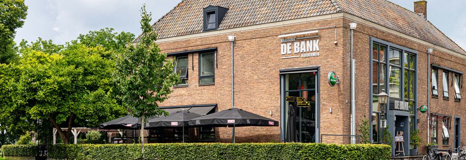 Bij binnenkomst in Harderwijk vind je Brasserie de Bank aan de Smeepoortstraat. Het pand stamt uit 1960 en heeft eerder dienstgedaan als onderkomen van de SNS bank. Dit verleden is nog goed zichtbaar. Zo zit bijvoorbeeld de koelcel verborgen in de voormalig kluis. De kantoorruimtes zijn nu ingericht voor private dining.